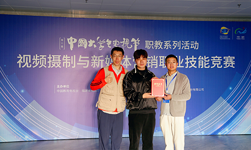 25日,在福建省福州市举行的第十一届中国大学生电视节“视频摄制与新媒体营销”职业技能竞赛上,数字媒体系王勇老师指导张传根、夏俊琪组成的学生团队在全国100支参赛队伍中荣获团体三等奖。